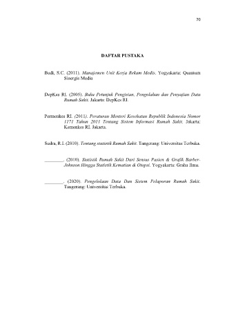 ________. (2020). Pengelolaan Data Dan Sistem Pelaporan Rumah Sakit.